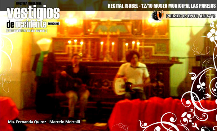 Excelente comienzo de la muestra itinerante VDO y los Eventos Auras, el publico visito la obra y disfrutaron de la actuación de Isobel (Marcelo Mercalli y Maria Fernanda Quiroz), ademas de la proyeccion de fotos de Maria Fernanda Quiroz y dibujos no incluidos en la muestra de Diego Baigorri. A todos, muchas gracias por apoyar el arte y hacernos comenzar con fuerza nuestros eventos, que esperamos sean muchos mas. En los proximos dias podran observar videos y fotos de lo ocurrido.